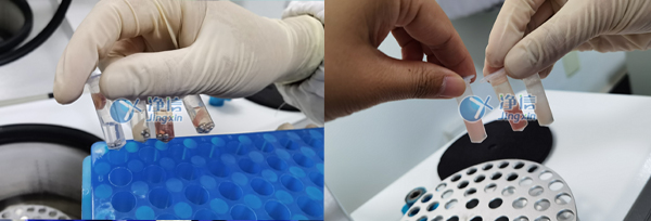 3、首先將管放入研磨儀中固定,扣好安全鎖,啟動程序等待結束。