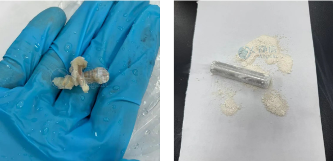 經全自動液氮冷凍研磨儀處理后的大鼠股骨,成功變?yōu)榧毮伔勰瑹o肉眼可見顆粒。后續(xù)檢測完全符合實驗要求。