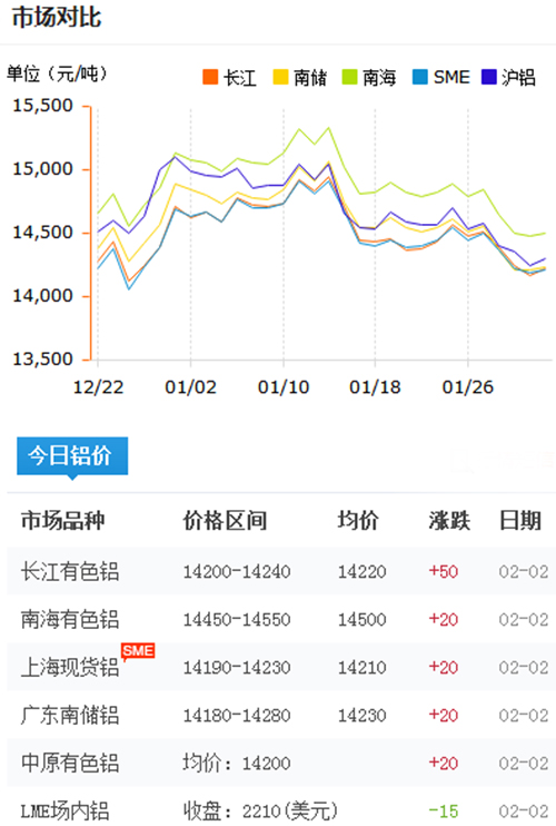 鋁錠價格今日鋁價2018-2-2