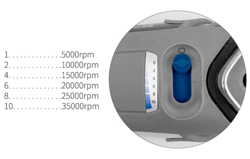 5,000~35,000 rpm,,可調增量為5000 rpm