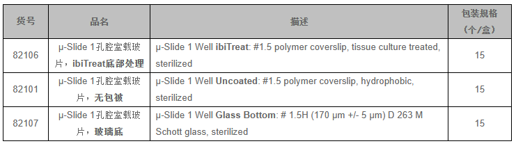 l也可提供玻璃底的載玻片μ-Slide 1 Well?Glass Bottom 適用于特殊顯微鏡應用